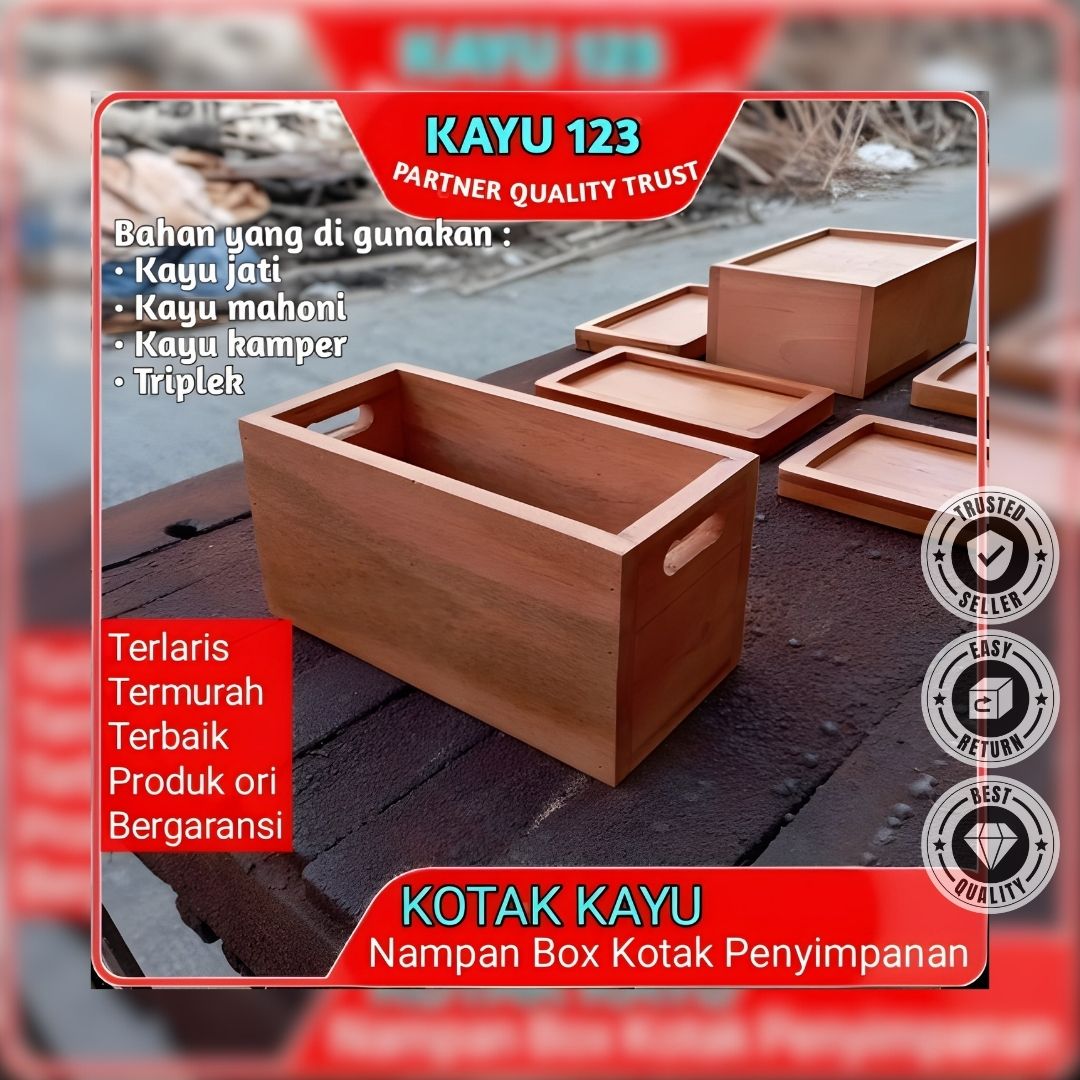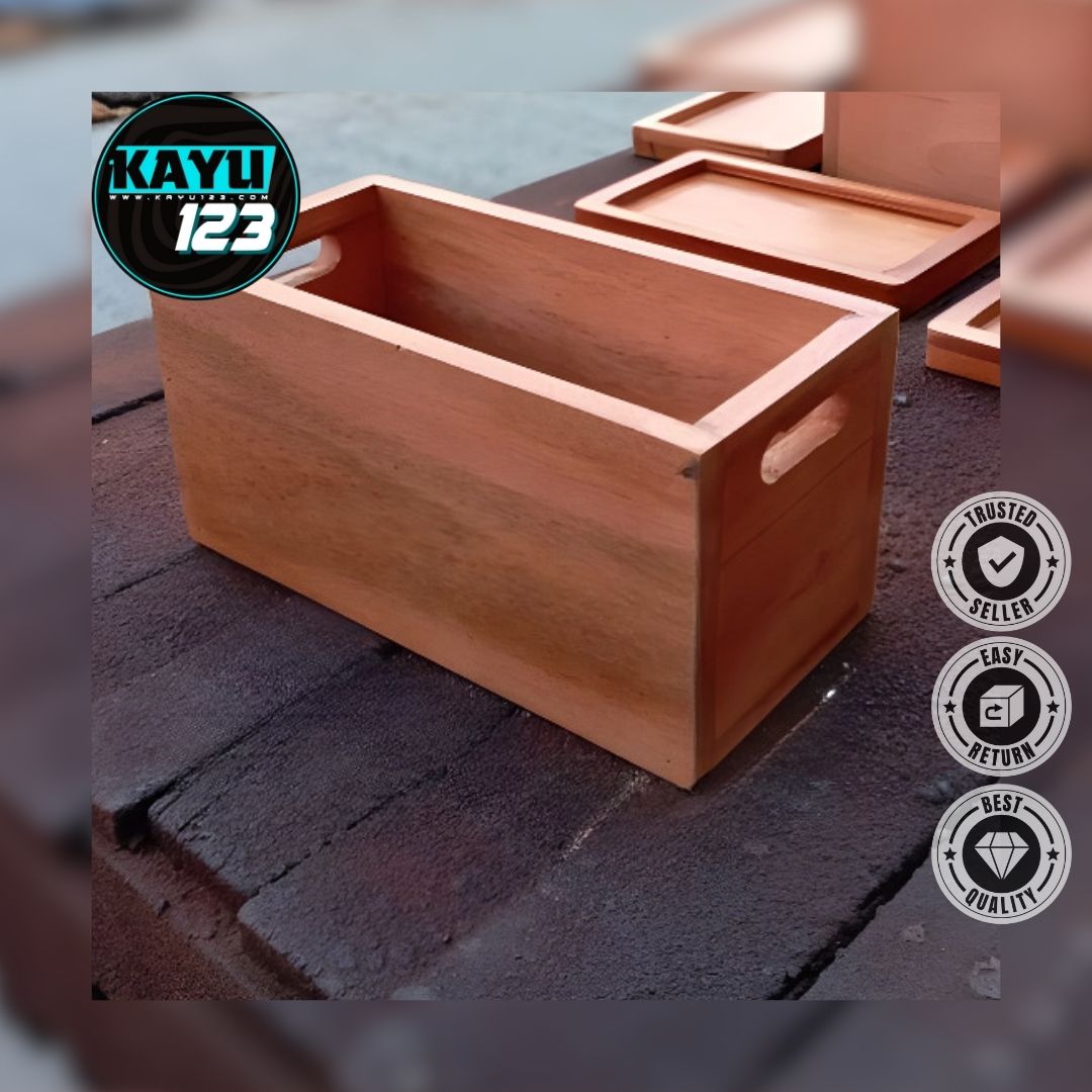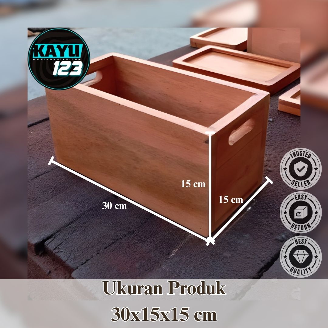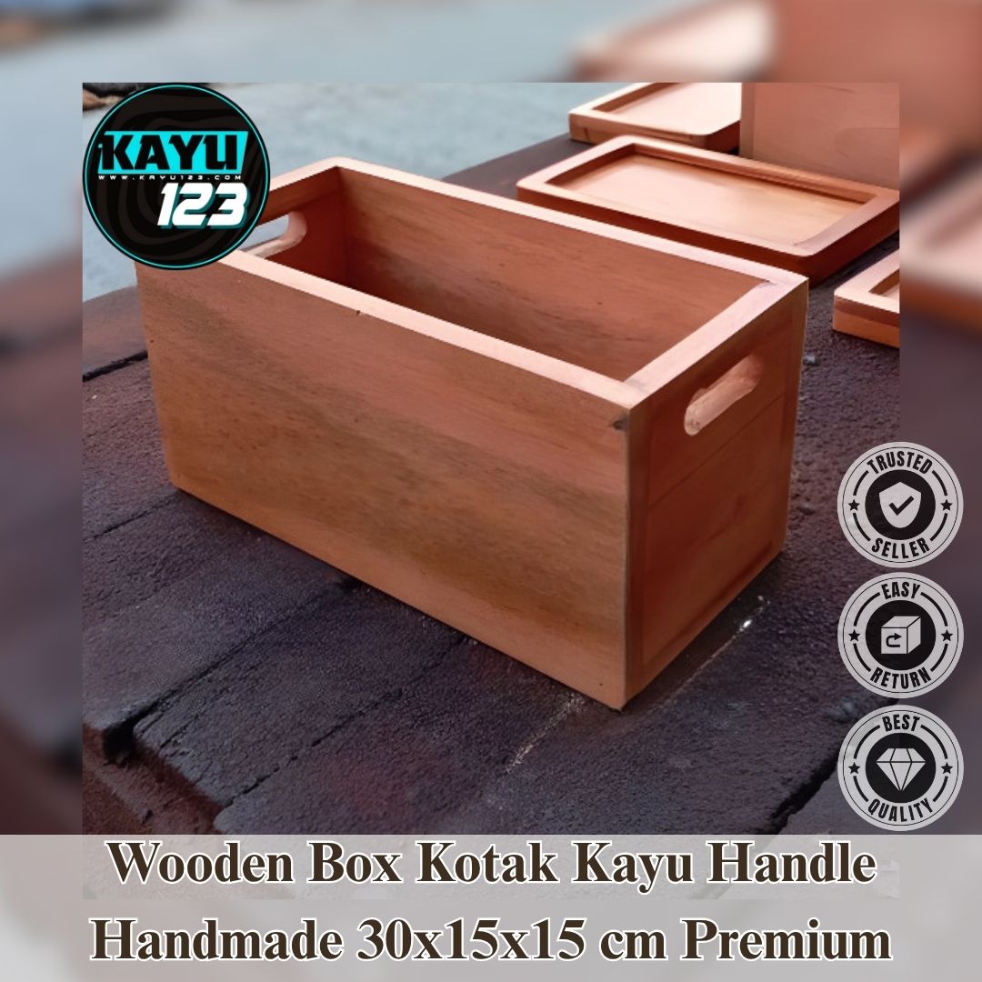 Wooden Box 30x15x15 cm Kotak Kayu Handmade Serbaguna dengan Handle & Tutup Premium